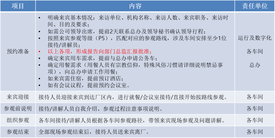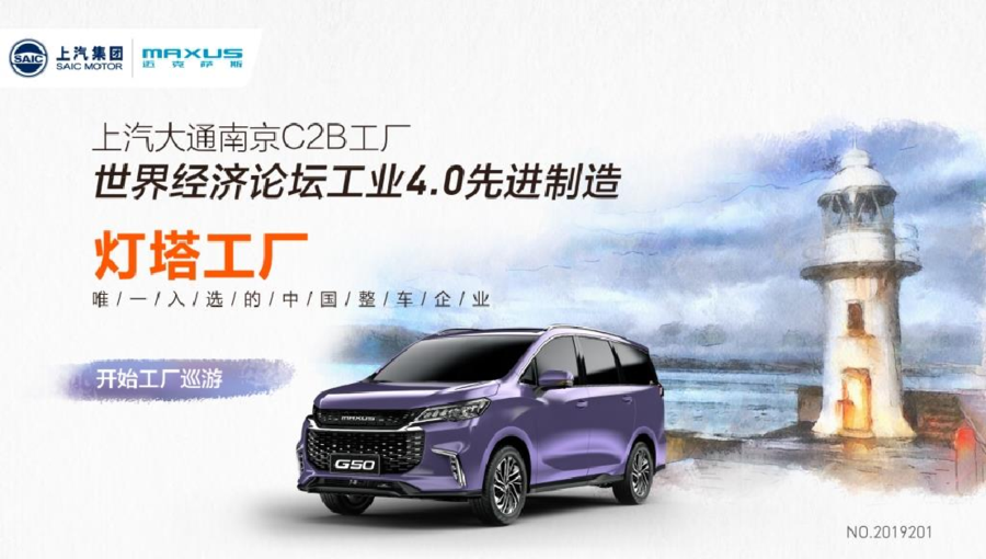 上汽大通“灯塔”工厂简介 “灯塔工厂”:上汽大通南京工厂是首家入选全球“灯塔工厂”名单的中国整车企业。该C2B工厂以用户需求为中心,驱动整个制造体系智能化升级,将C2B大规模个性化智能定制理念融入整车生产制造。 上汽大通南京C2B工厂在世界范围的权威评选中获得肯定,代表了世界经济论坛对上汽大通C2B用户驱动业务发展模式的认可,以及对上汽大通在汽车行业发展中贡献出中国智慧的表彰,上汽大通因此成为继宝马之后又一家获此殊荣的汽车企业,更成为了全球首家入选工业4.0“灯塔工厂”名单的中国整车企业。 特色:一系列支持C2B生产的技术措施,不仅能够适时、适量、适品满足用户的定制化需求,实现C2B大规模定制,同时满足高质量、可控成本的要求;集数字化、物联化、智能化、柔性化于一身,把冲压、车身、涂装、总装生产过程和供应链管理、物料配送、IT系统等共同协作。 “灯塔”工厂参观接待流程